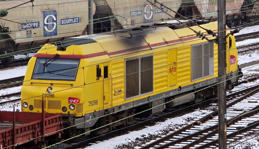 BB 75096: Mise en service: 20 novembre 2008 à Longueau activité Fret. Changement d'activité: Fret à Infra en juillet 2011. Mutation: Longueau à SLI Chalindrey le 29 juillet 2011.