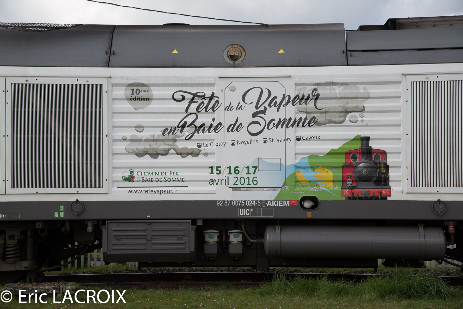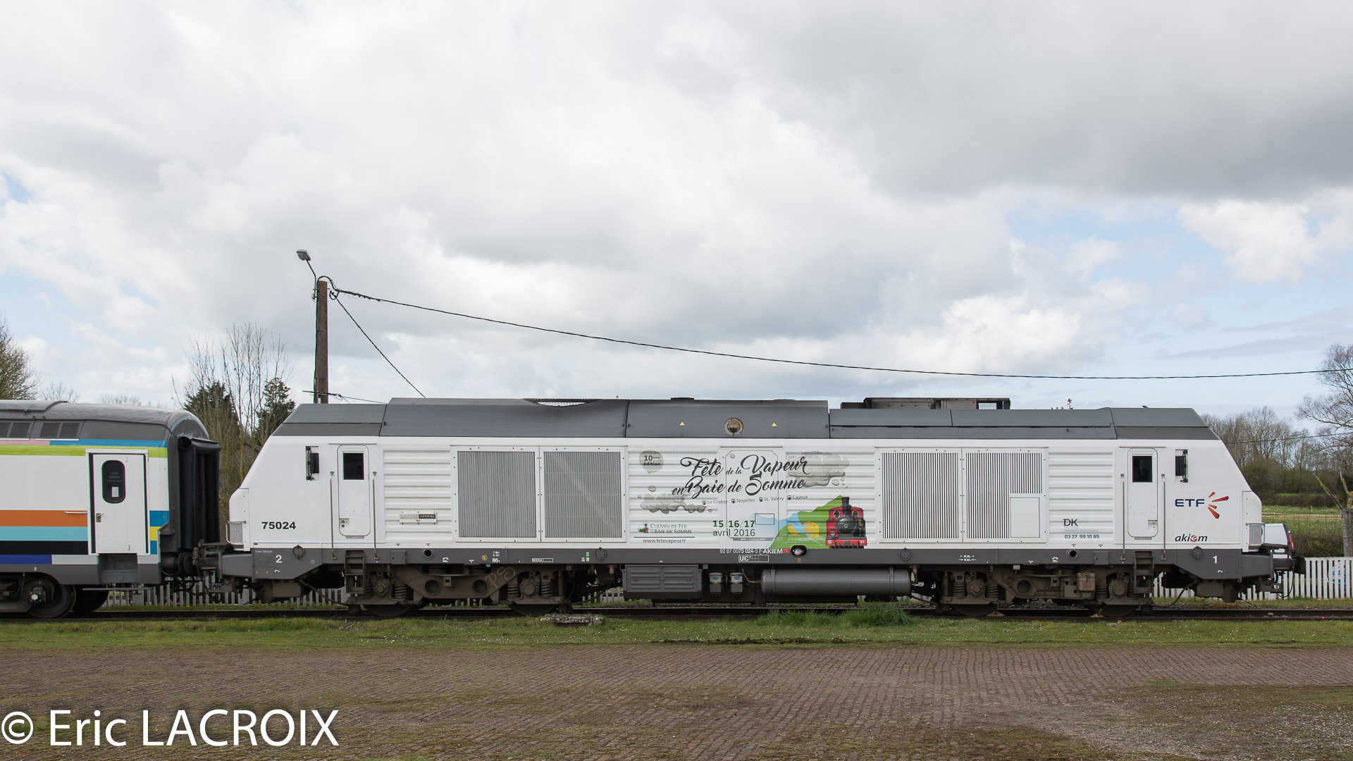 75024 Akiem ETF pelliculé aux couleurs de la 10ème Fête de la Vapeur du CFBS entre Abbeville et Noyelles le 14 avril 2016.