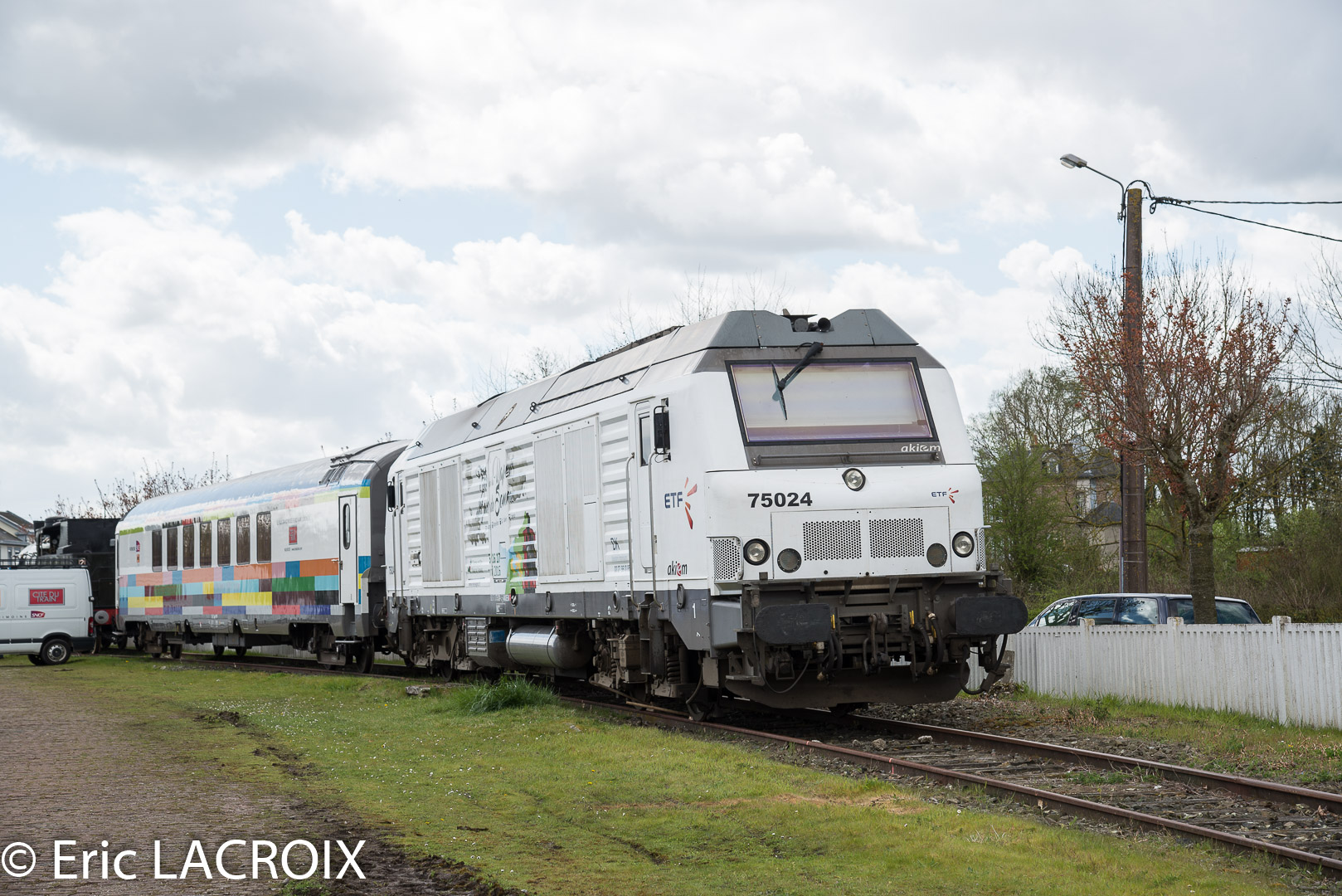 75024 ETF et la voiture de la Cité du train à Noyelles le 15 avril 2016.