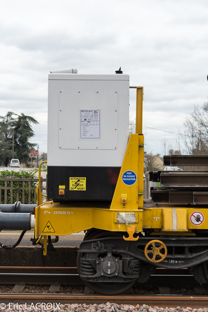 Couplage Wagon grue BRRAS 99 87 9 351 556-5 Transalp Renouvellement à Villeneuve la Guyard en mars 2017.