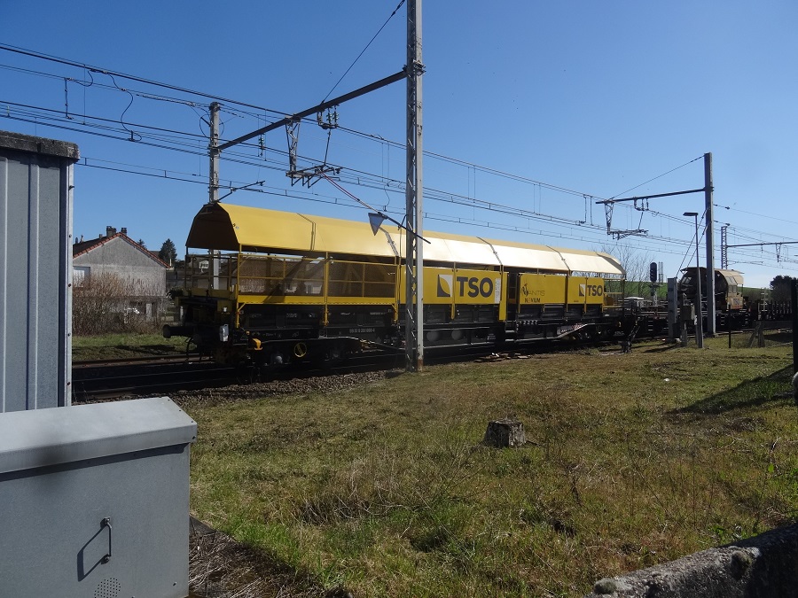 Le wagon est utilisé en mars 2025 sur le secteur de Châtellerault de la ligne Paris-Bordeaux. Les rails neufs sont sur une rame SNCF.