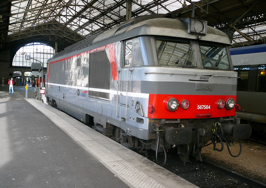 Voici la machine 567564 Infra en livrée Corail + (mise en service le 14-10-1973) en véhicule dans une rame Infra qui arrive
