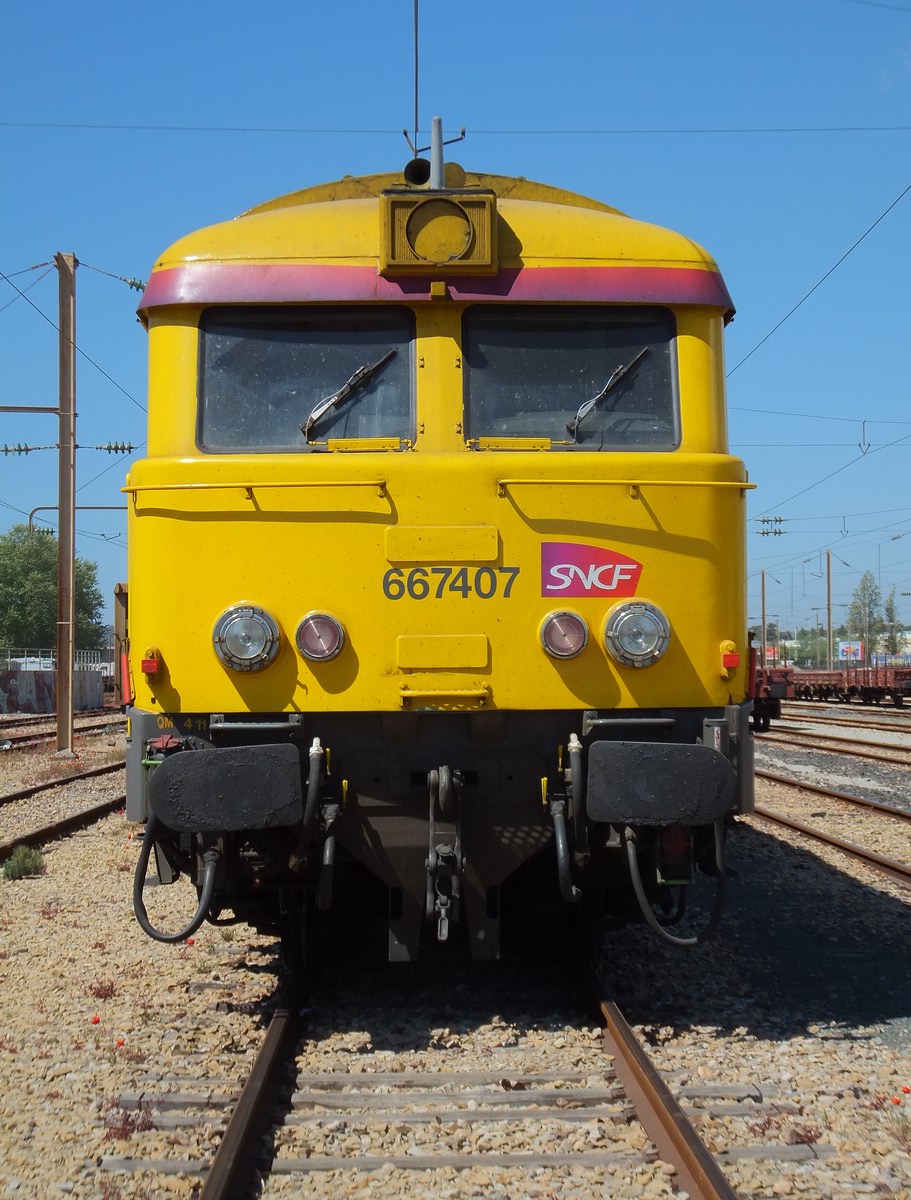 en compagnie de la BB 67412 Infra qui arrivait de Montbéliard avec plus de 30 wagons vide mais qui en à laissé la moitié a Belfort pour continué son chemin sur Giromagny