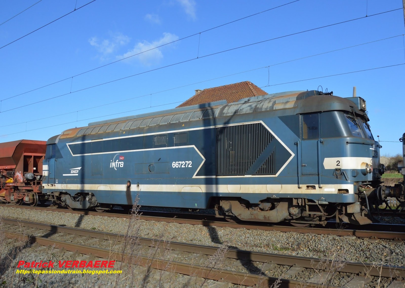 Il s'agit de la BB 67272 a Hazebrouck le mercredi 12 février 2020 sur une marche Calais / Lille Délivrance au crochet de la BB 67248 Infra :