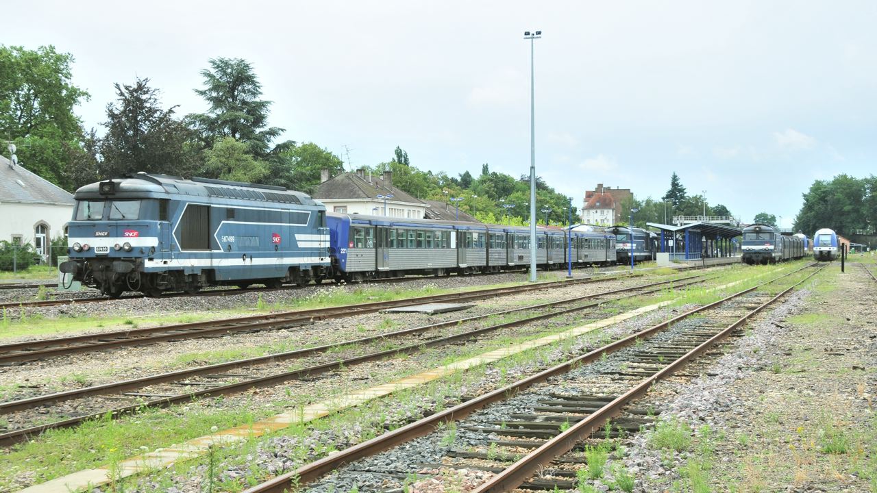 elle arrive avec la 567422 Infra en livrée bleue en tête avec une rame de S3 de LRS vide du sud ouest