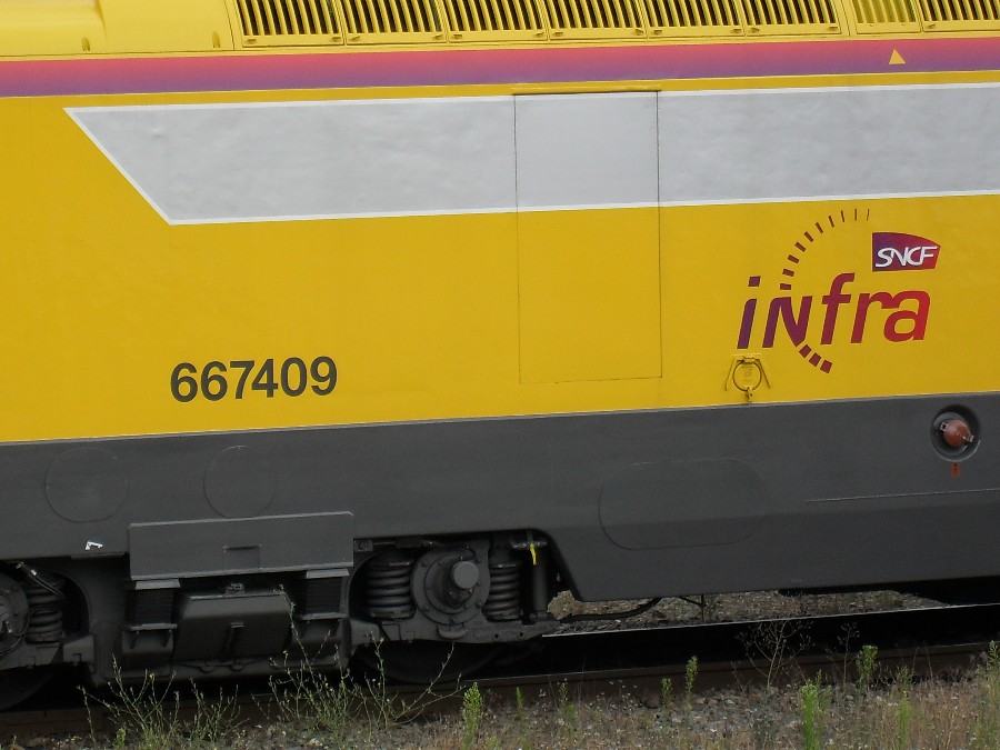 La voici sur un TM Infra à la sortie nord du dépôt de Saint Pierre des Corps le dimanche 16-08-2015