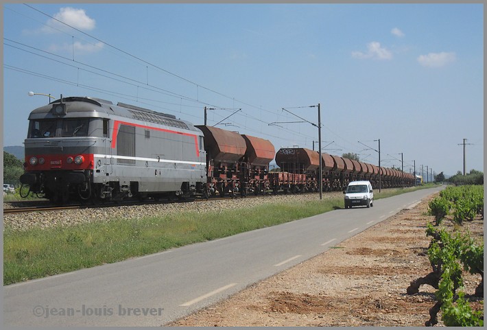et voici le convoi au passage de Cuers (83) photographié par 7 toffeurs et sous les nombreux coups de sifflet émanant de la locomotive menante :siffle: :D