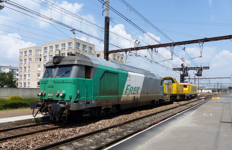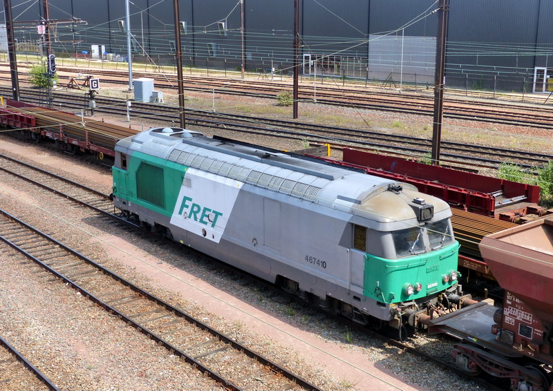 Voici la 467410 Infra en livrée Fret (mise en service le 09-02-1970) en sortie de dépôt sur un TM avec les machines