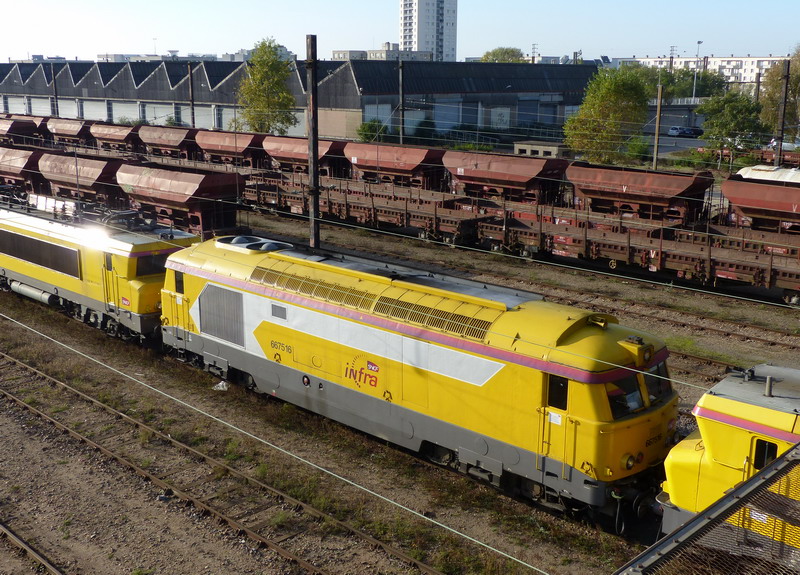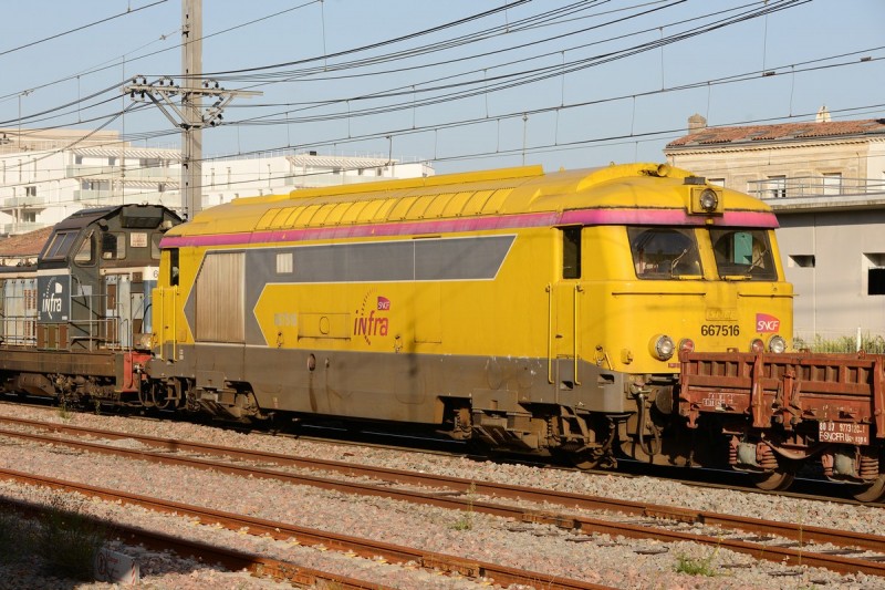 Voici une nouvelle pour le Forum la 667516 en livrée Infra (mise en service le 03-07-1972) en véhicule sur un train qui