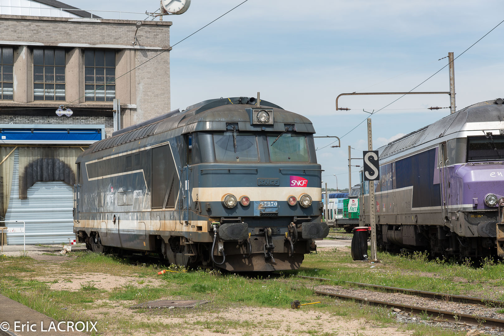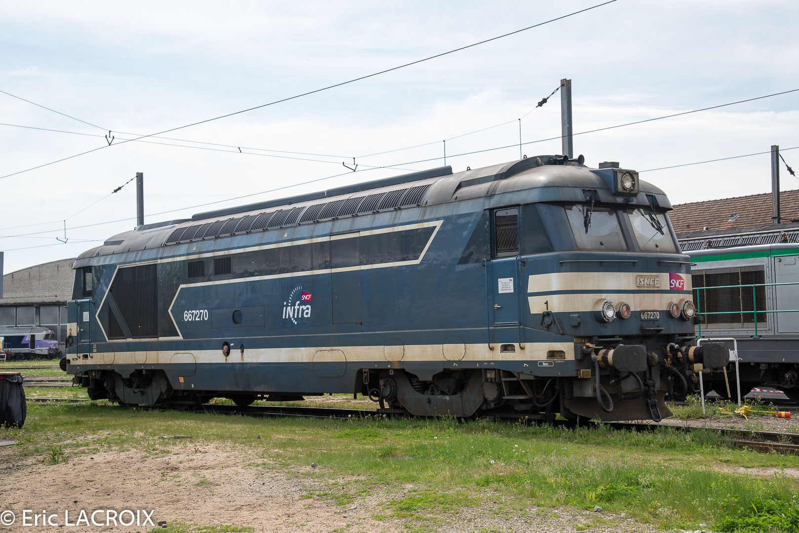 Voici la 667270 (ex 67055 mise en service le 14-05-1965) en tête d'un TM à la sortie Nord du dépôt de Saint Pierre des Corps