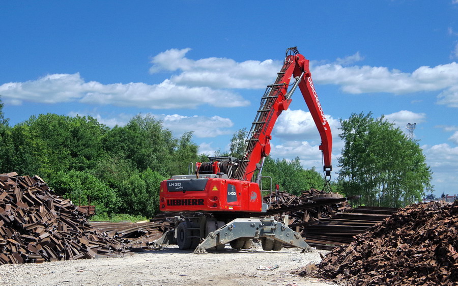 LIEBHERR LH 30 Industry Litronic n°WLHZ1200KZK083106 sur la base de travaux de la gare de Laon le 22-06-2018