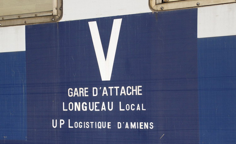 Voici une voiture de cantonnement 80 87 979 0 606-8 Uas H55 0 F SNCF-AM gare d'attache Longueau - Local UP Logistique d'Amiens