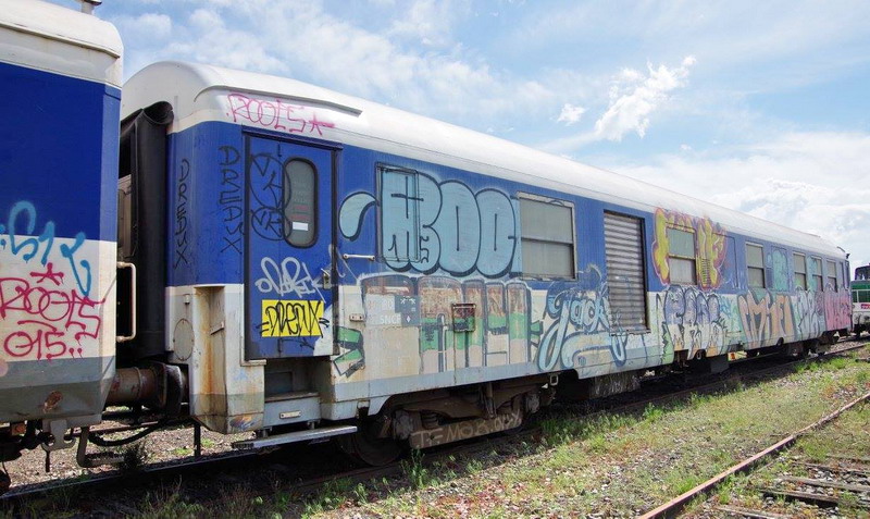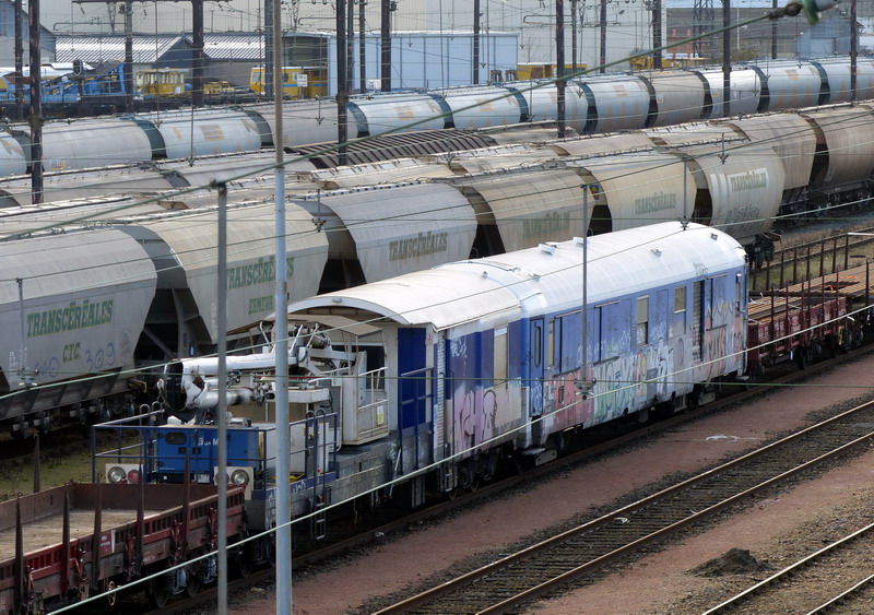 Voici la 80 87 979 0 660-5 Uas H55 0 SNCF-RO - Caen (ex A7D puis B7D) voiture accompagnement du wagon de contrôle des