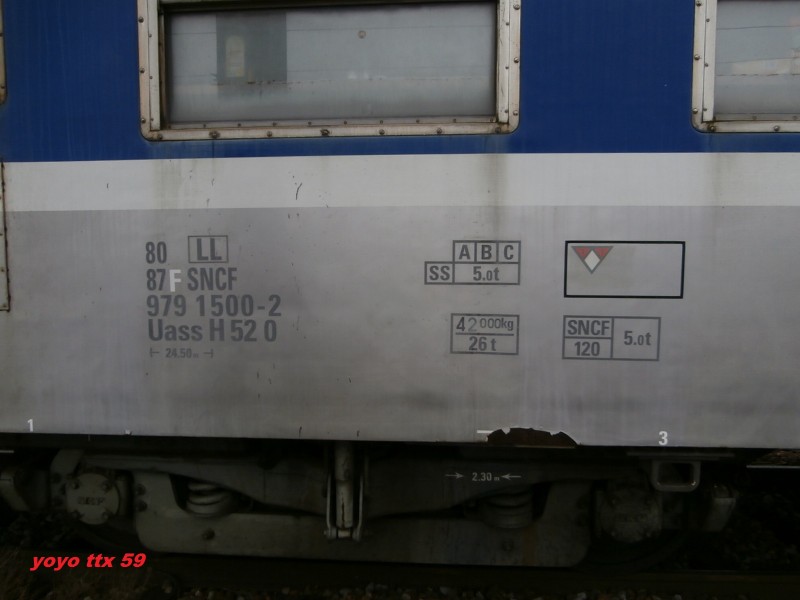 Il s'agit de la voiture UIC - 80 87 979 1 500-2 Uass H52 0 - SNCF - LL a Lille Délivrance le 26/01/2014 :