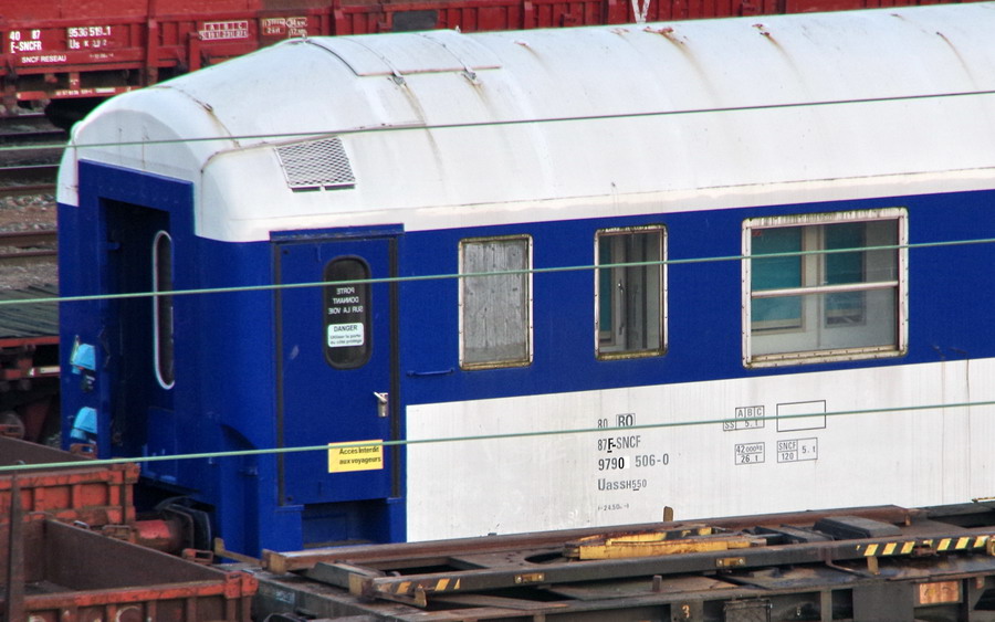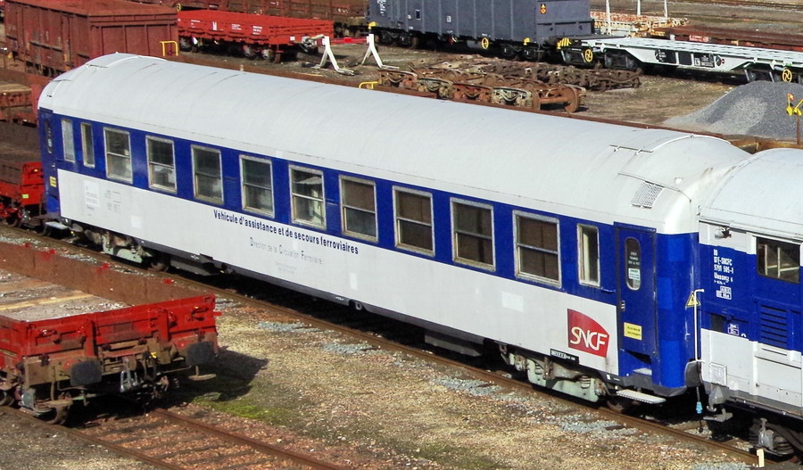 Voici la voiture 80 87 979 0 506-0 Uass H55 0 - F SNCF-RO ''Véhicule d'assistance et de secours ferroviaires"