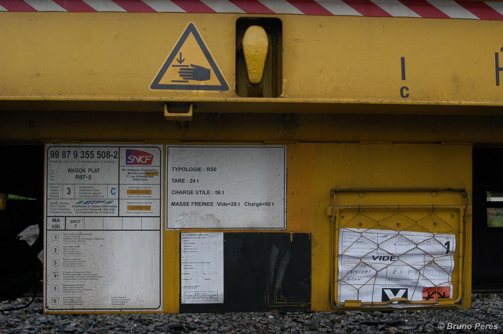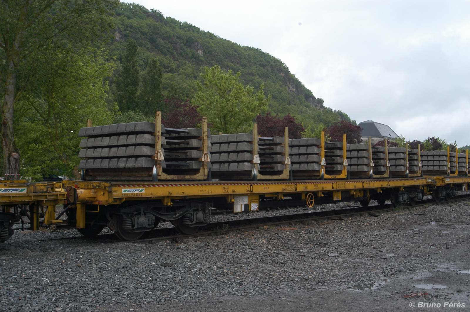 Wagon acquis par ETF pour le transport de traverses conditionnées sur palettes.