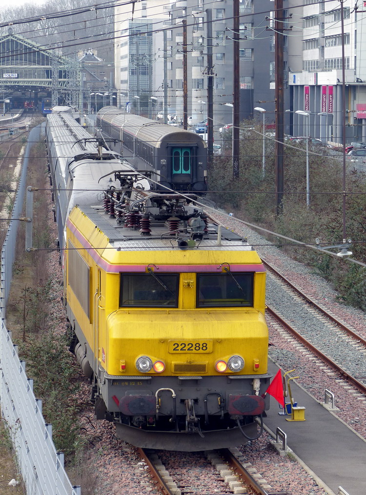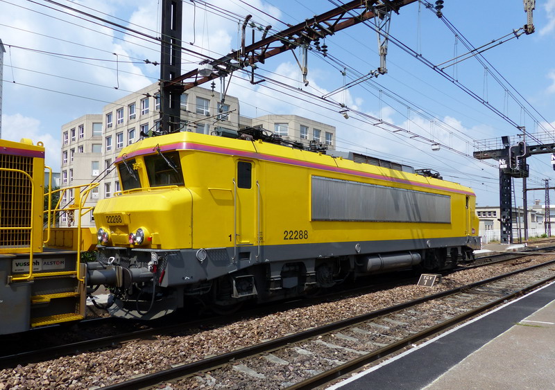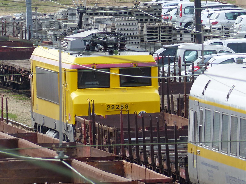 Voici la 22288 avec la 467472 Infra en livrée Fret qui arrive du Sud-ouest à 15h40 avec une rame infra sur la zone de garage des
