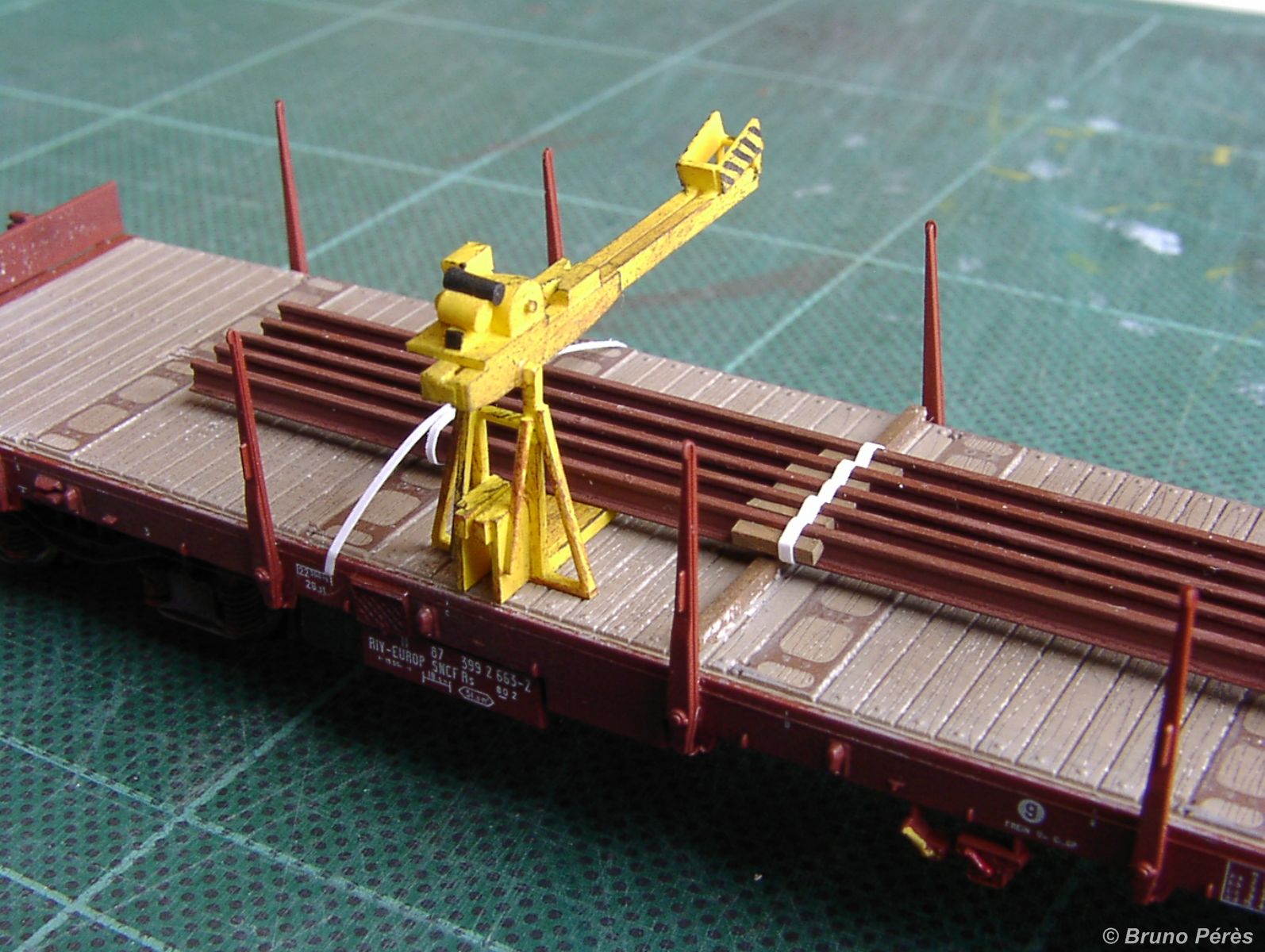 C'est en chantier depuis pas mal de temps déjà, mais il va falloir que je m'y remette puisque, saison aidant, je dispose d'un peu plus de temps. Ils seront déclinés en différentes variantes : avec ou sans moteur, montés ou pied d'un côté et potence de l'autre, version SNCF, ETF ou Colas Rail. Certains seront destinés au décor, d'autre aux chargements, en position de travail ou démontés.