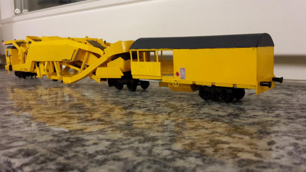 , voici ma dégarnisseuse-cribleuse Matisa C75. Realisation en carte plastique et matériaux divers avec réutilisation de pièces de toute provenance.