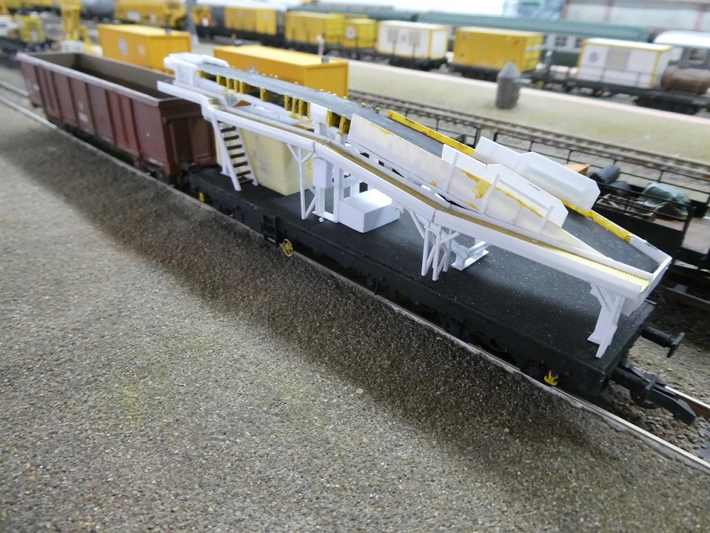 J'ai aussi effectivement une rame de 10 wagons tombereaux, patinés, entre lesquels s'intercale un autre tapis canon monté sur un K 50.