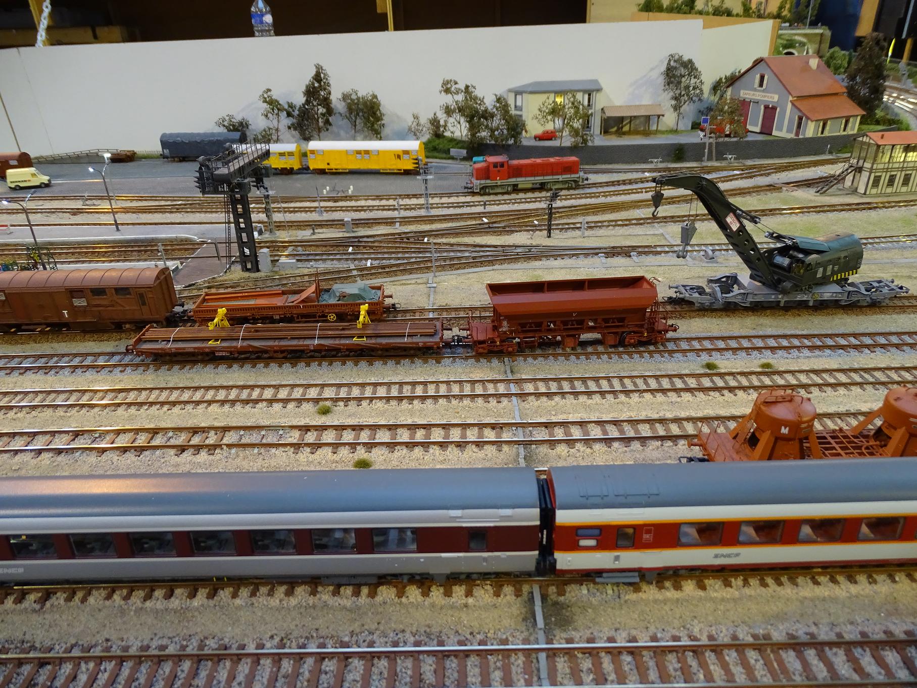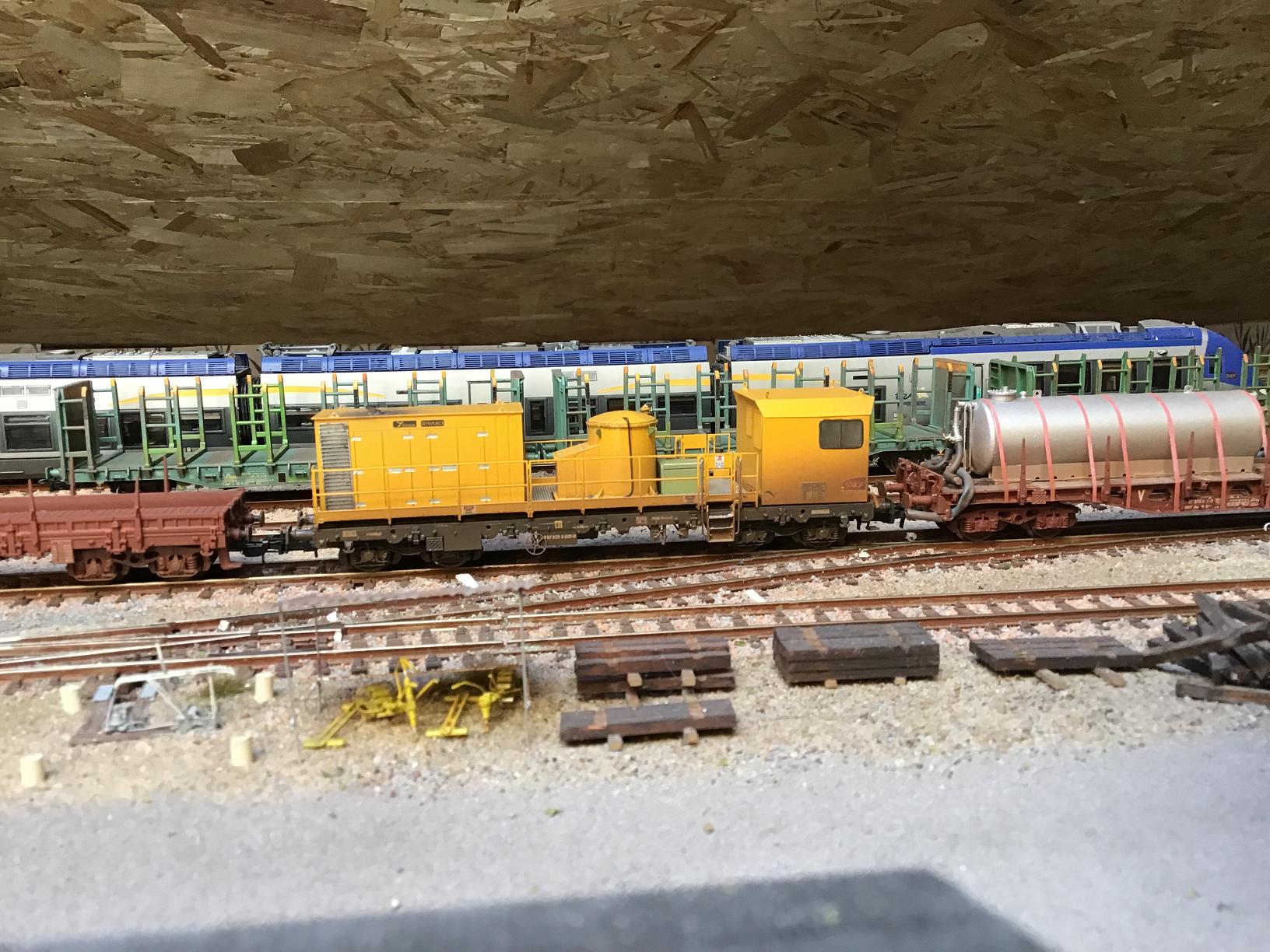 C'est la grue Jouef, reconstruite en version diesel, associée à son wagon porte flèche K5 roco modifié et un wagon atelier sur base Jouef.