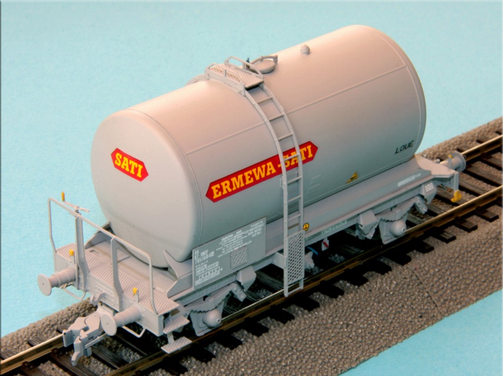Décapage puis nouvelle peinture de la citerne d'un OCEM 29 REE, marquages spécifique par décals, patine avec les produits Décapod , ce wagon de carburant restera dans les emprises du dépôt de Clermont car les côtés des traverses sont peints en jaunes ! ;)