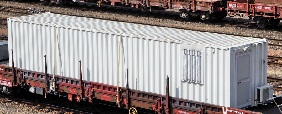 Voici le wagon 80 87 979 4 708-9 Uas R55 6 F SNCF-PN - Point d'attache Villeparisis avec son bungalow de cantonnement