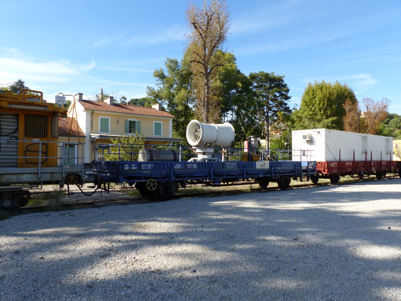 Voici le wagon ventilateur n°6 dans une rame de contrôle des ouvrages d'art