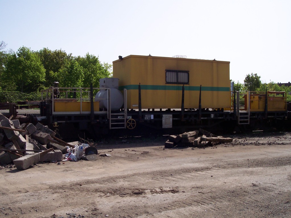 elle se trouve en plein au milieu d'une rame wagon plats ou circule des pelle sur chenille qui ramasse du ballast d'un côté et les matériaux ferreux de l'autre