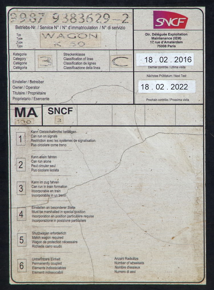 Wagon K50 - 99 87 9 383 629-2 Meccoli - Agrément de travail 18-02-2016/2022