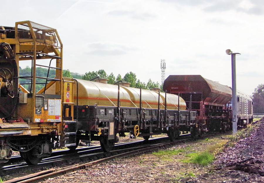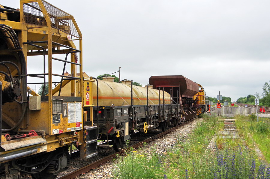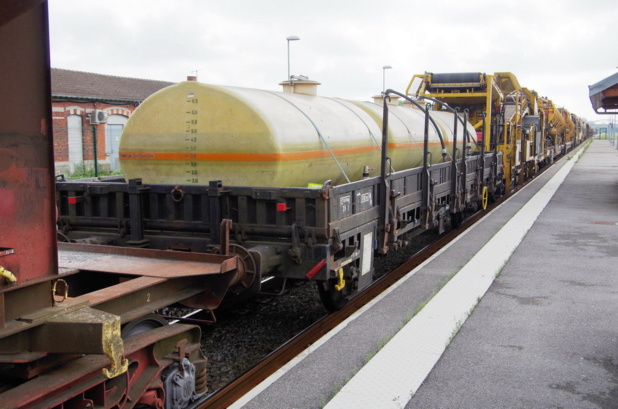 Le voici sur la rame de TTX n°XDK1 avec la Dégarnisseuse Cribleuse 99 87 9 314 509-0 RM 900 SF Meccoli "Angélo"