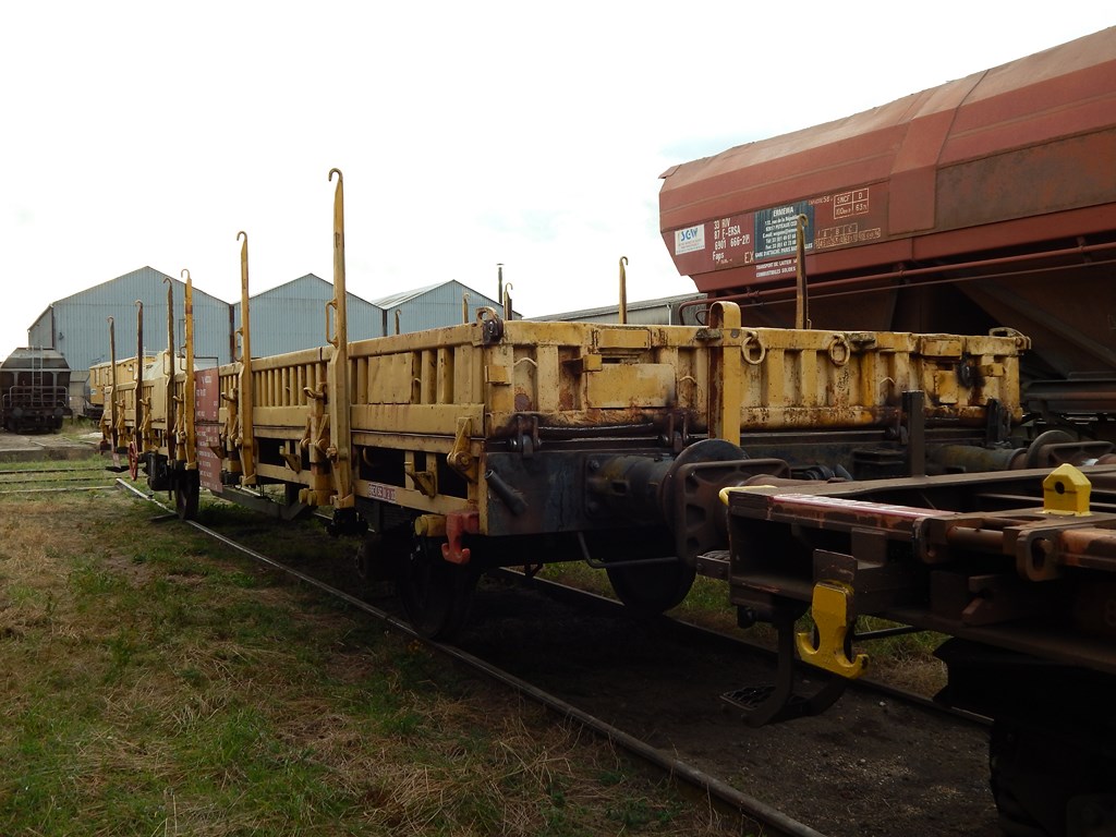 Wagon plat type K50 - 99 87 9 383 882-7 ex RTO TR Ã Saint Pierre des Corps 37 (entre Vechietti et la Socofer) le 17 janvier 2014
