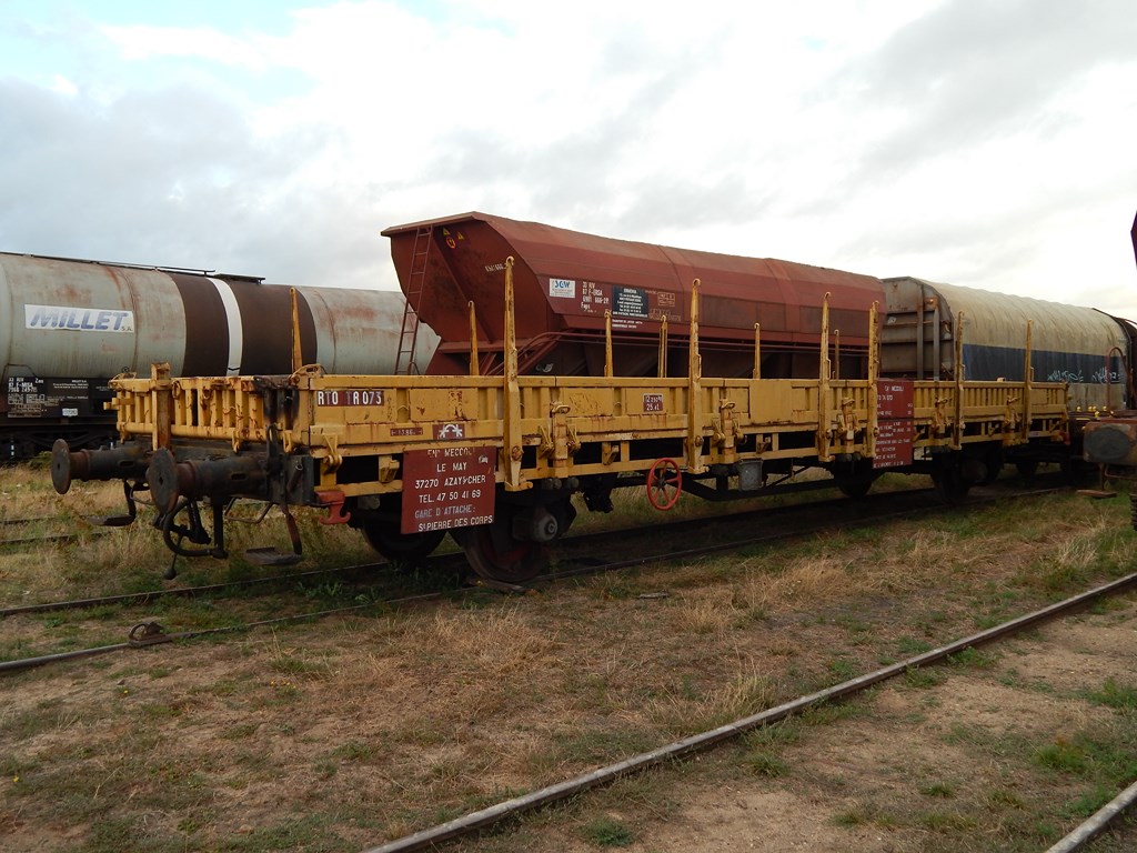 Wagon plat type K50 - 99 87 9 383 882-7 ex RTO TR à Saint Pierre des Corps 37 (entre Vechietti et la Socofer) le 17 janvier 2014