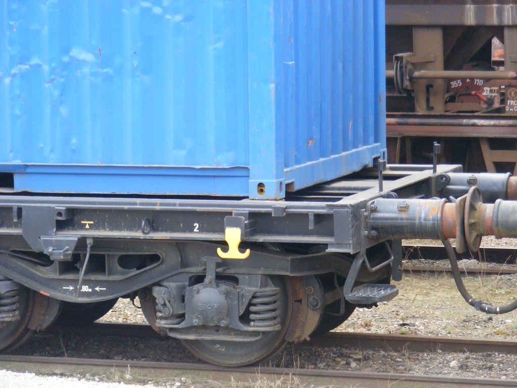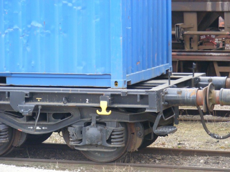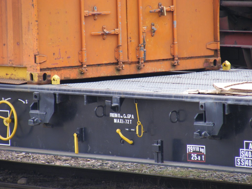 Un plat porte conteneur, immatriculé comme wagon de particulier....
