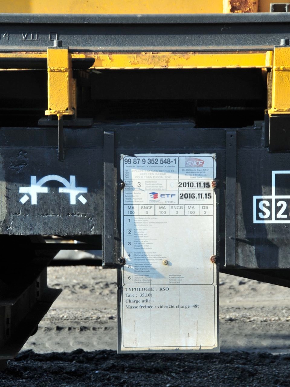 Voici le nouveau Agrément du wagon avec bennes et groupe énergie qui rentre dans la composition du train PUSCAl d'ETF