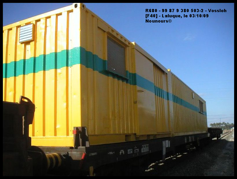 Laluque (40) - Plat R680 - 99 87 9 383 503-2 ex RT0 ATA 0472 de Vossloh présent sur le RVB Bayonne - Hendaye.