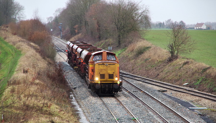 La voici sur la base de travaux de la gare de Ham (80) le 07 février 2018 avec des photos de Gtr Lefèvre