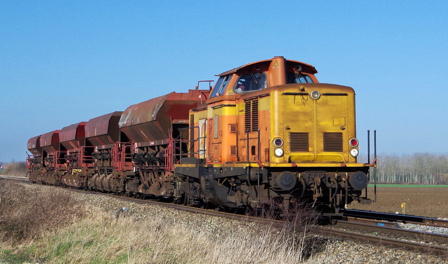 La voici sur une rame de TTX avec la V211R - 99 87 9 182 537-0 de Colas Rail sur la base de travaux de la gare Ham (80)