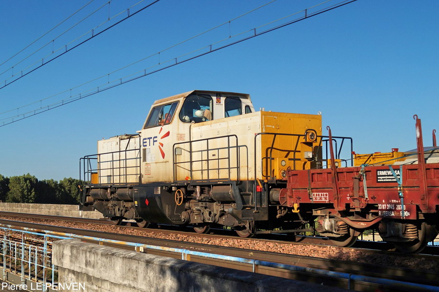 La voici sur le train n°F1F2 de la rame de finition et de ramassage de fin de chantier du RVB Blois - La Ville-aux-Dames avec en queue la G 1206 BB 1001377 - 92 87 0 061 013-4 de VFLI photos de François86 du Forum Wagons-Passion en gare de Blois le 28 août 2018