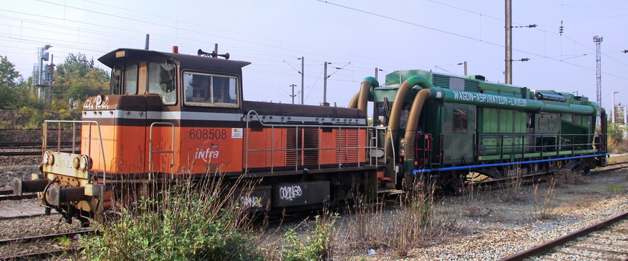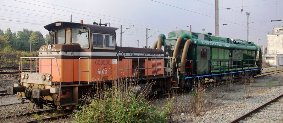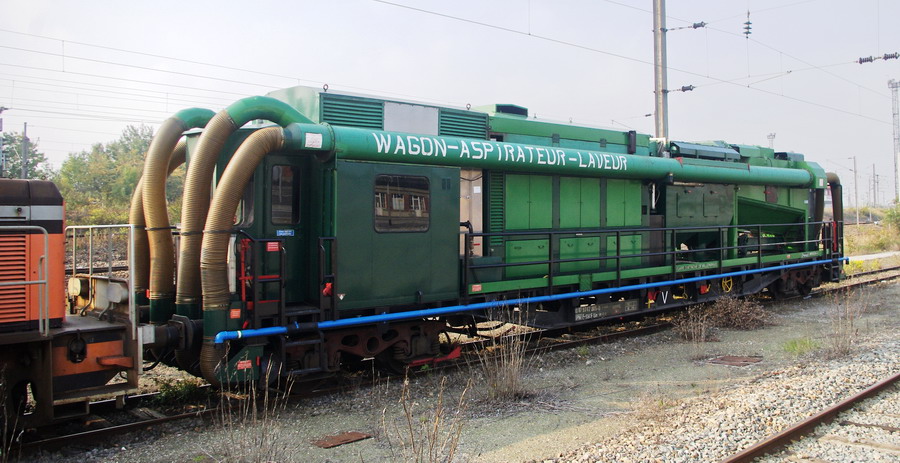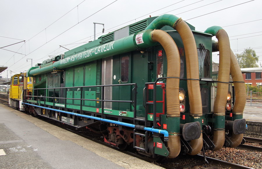 Quelques photos d'un wagon aspirateur en gare de BEAUVAIS. Il est tracté par un Y8OOO télécommandé. L'agent manoeuvre la rame depuis le quai avec un boitier de commande
