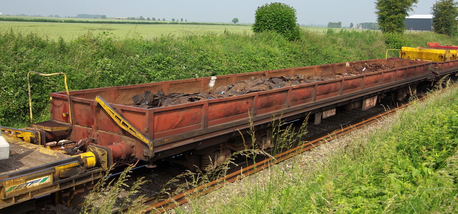 wagon 80 87 976 7 103-5 Ua R00 5 F SNCF-PSL pour ramassage et distribution d'agrès pour le P95 ETF