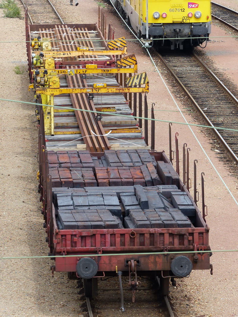 La suite des photos pour le wagon 87 87 393 1 137-0 Rbps 40 6 F-ERSA entre le Crem DV13 et la zone de garage des rames Infra/SNCF de Saint Pierre des Corps le 02 juin 2014