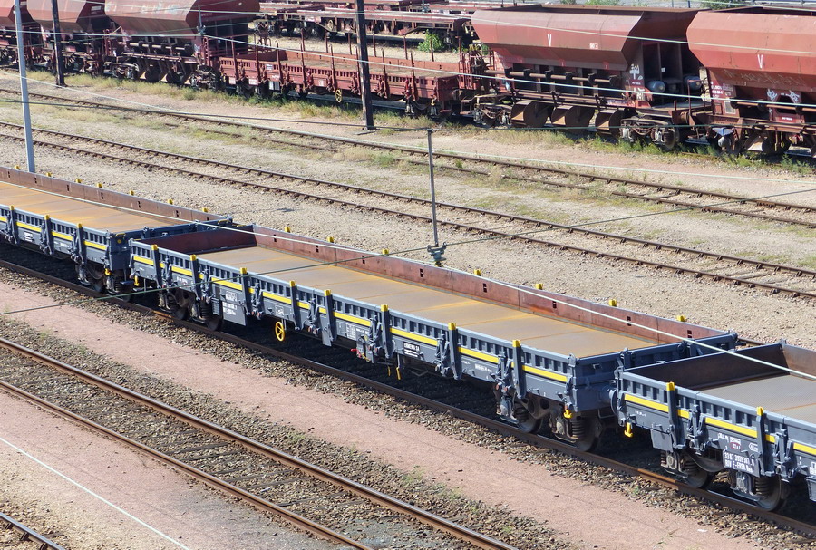 Voici le wagon plat de 18,50 sortant de révision avec une nouvelle livrée