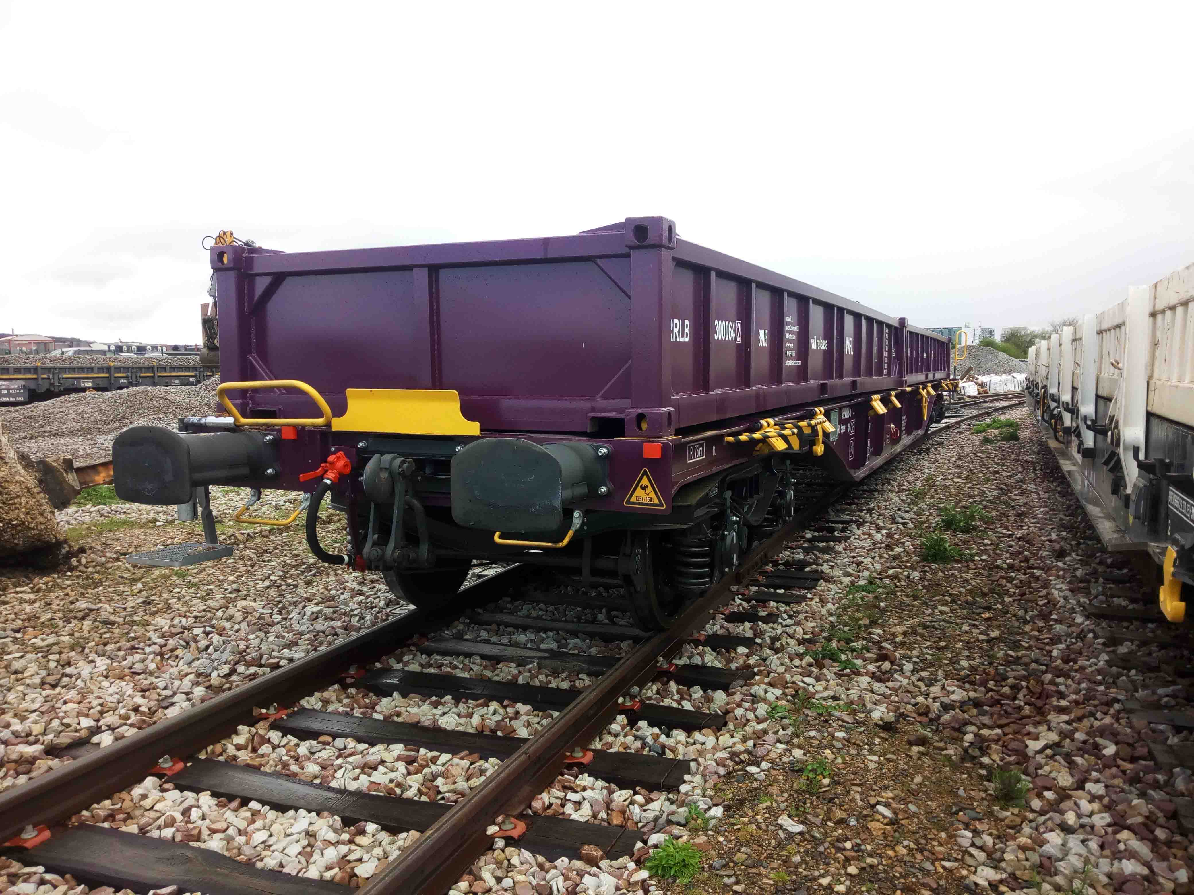Plat bogie avec deux berces à bords bas d'un loueur Hollandais, le wagon apparemment provient de Slovaquie
