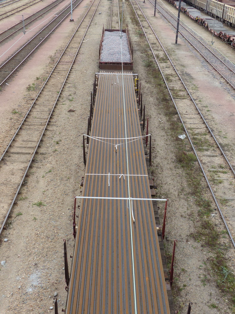 Voici le wagon 33 87 3902 193-3 R83 Rs RIV F-ERSA (wagon d'Ermewa loué à l'Infra) sur une rame de rails de Moulin-Neuf