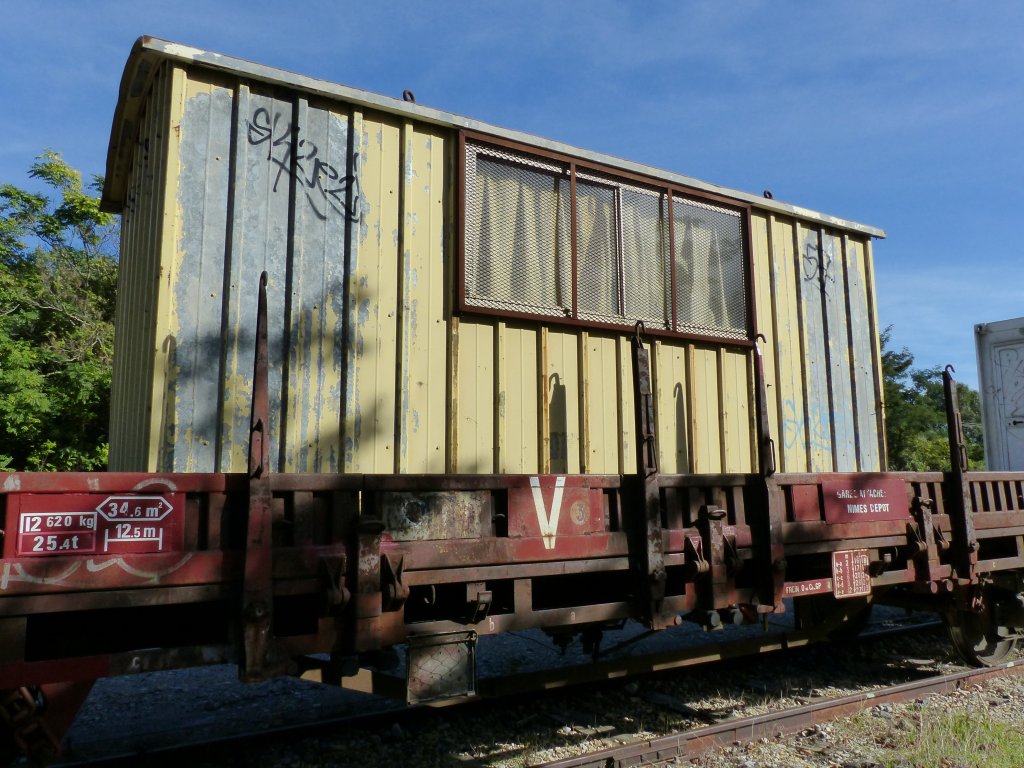 - wagon plat à ranchers avec conteneur amménagé 40 87 952 1 078-5 MP SNCF Us K 00 1