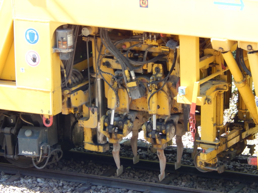 Les unités de bourrage AC4 sont conçues pour traiter la pleine voie en premier lieu. Grâce à l’important mouvement latéral et aux pioches extérieures pivotantes à 90°, ces unités peuvent traiter des courbes de petit rayon et caler la voie déviée des appareils à une distance de 1’524 mm depuis l’axe de la voie. Ces unités équipent aussi la B 38 AC à écartement métrique.