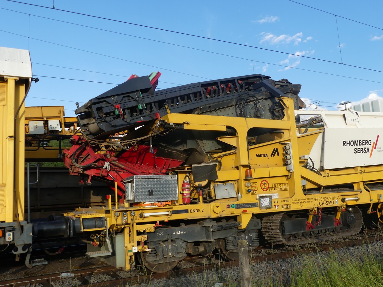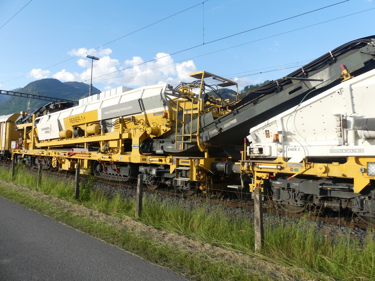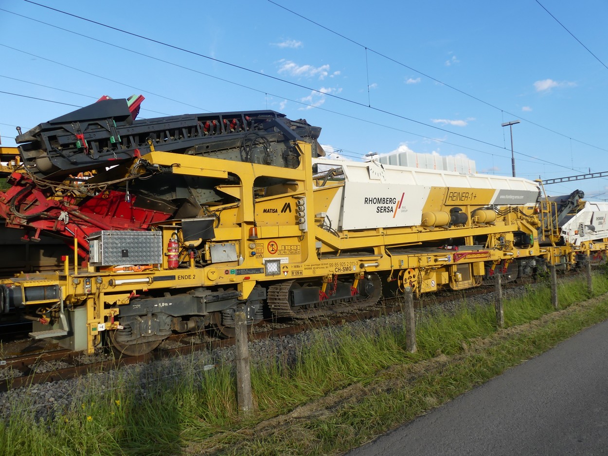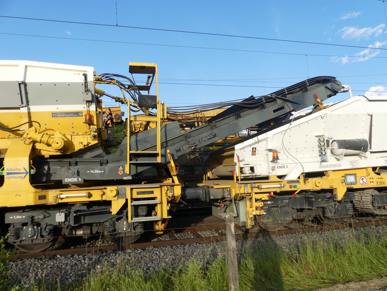 Pour fonctionner la cribleuse W1+ à besoin du wagon qui l'accompagne Reiner 1+ qui contient le crible et le tapis d'évacuation des criblures. basé sur un VAD par Matisa.