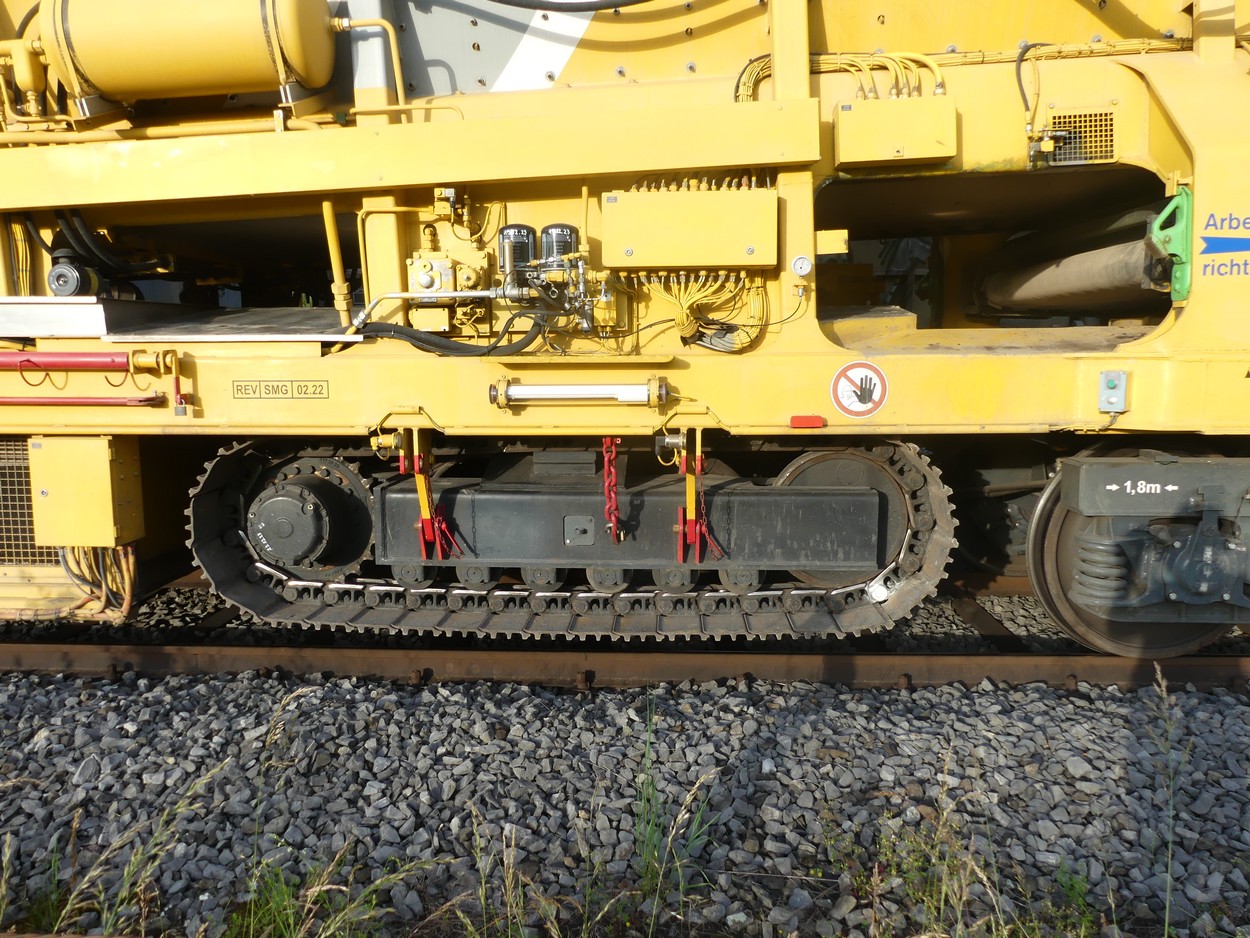 Ce wagon est à chenille étant donné qu'il suit la cribleuse.