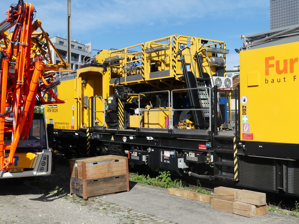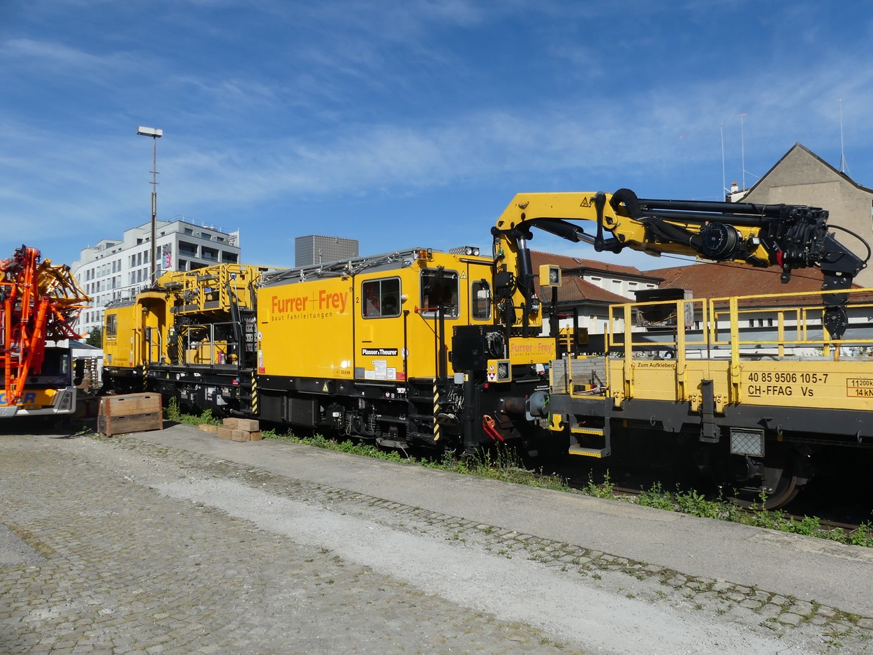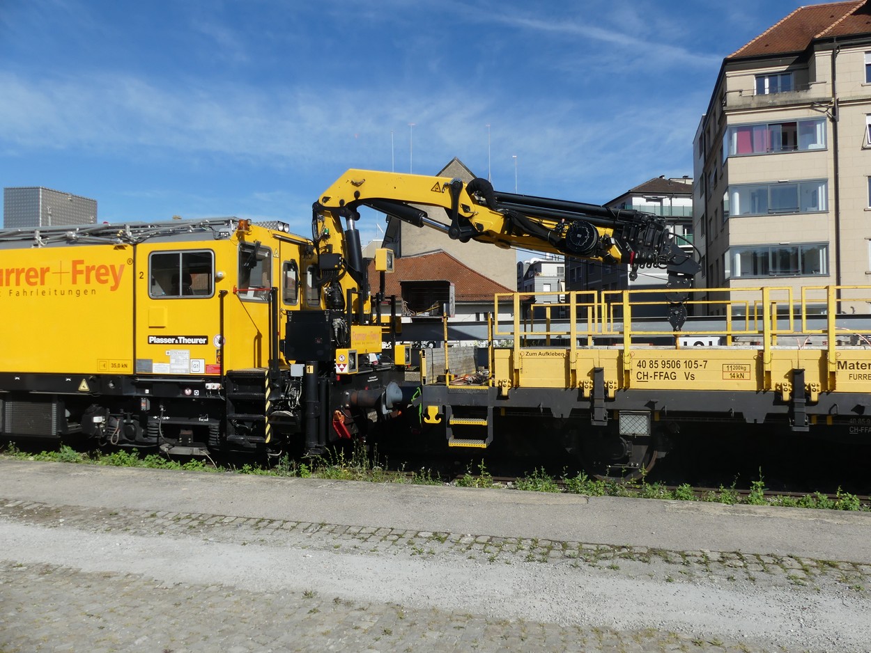 voici un engin que je n'avait encore jamais vu, un véhicule d'entretien des caténaires de l'entreprise Furrer et Frey